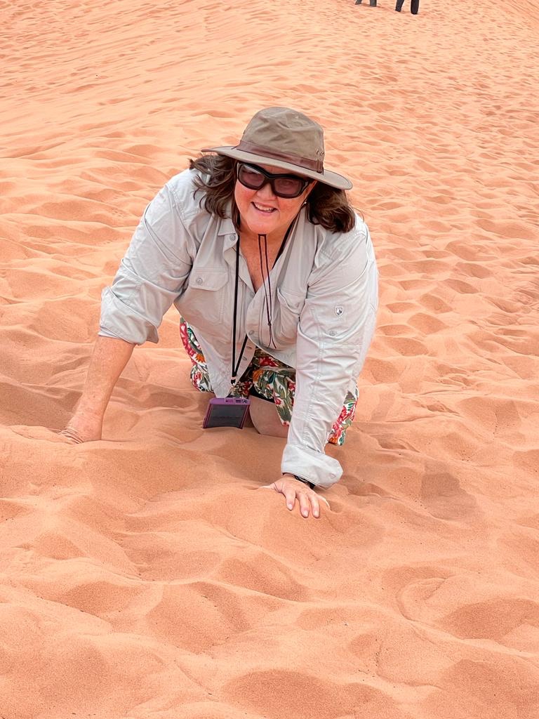 Friend Lisa demonstrates one technique to get to the top of this dune. For perspective, just look at the legs of people in the background.